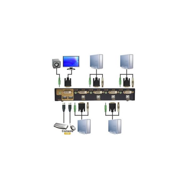 The DVI KVM Switch withbuilt-in sound effect function. It is specially designed for users of PC andMac with built-in DVI interfaces and loyal fans of SOHOenvironment and technology, which is well-suited for DVI. This unique type of KVM switch can easily control two computers, which have built-in DVIinterfaces, via a DVI display and either a PC or Mac keyboard and mouse. Imagedistortion due to conversion of analog and digital signals will not be aproblem anymore.