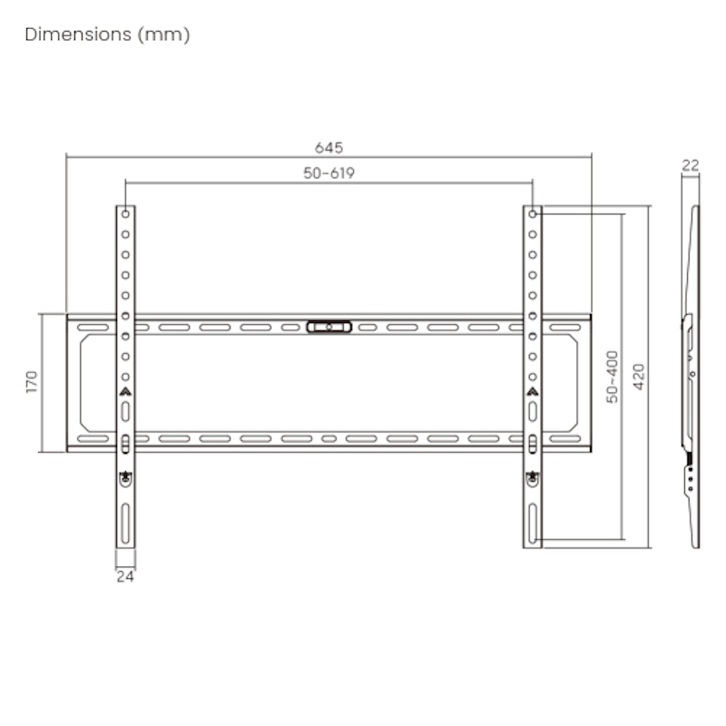 Vesa: 50×50, 75×75, 100×100, 100×150, 150×100, 100×200, 200×100, 150×150, 200×200,