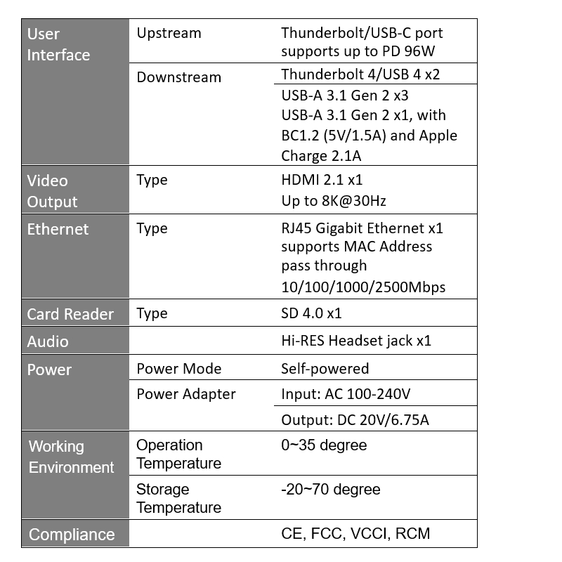 The dock provides full powered solution with dynamic PD up to 96W for your laptop charge.