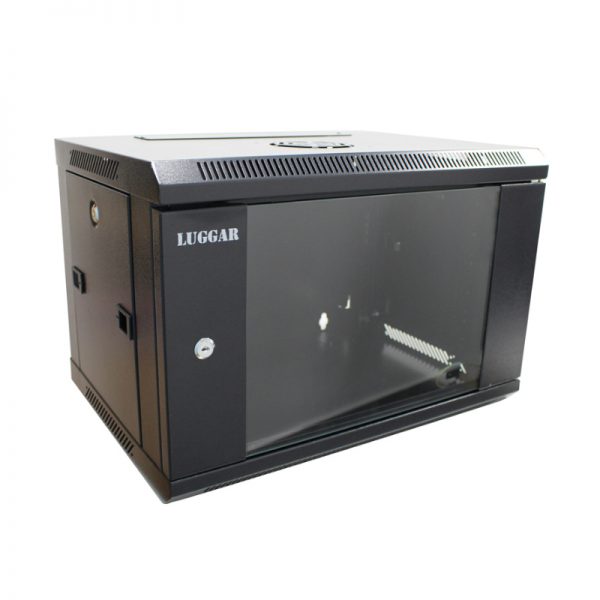 Description:Model: 6U Wall Mount Rack Cabinet 550 x 400 Brand Name: LUGGAR Color: Gray / Black Dimensions: W: 550mm, L: 400mm, H: 370mm Gross Weight: 11KG Static Loading Capacity: 45Kgs Door: Glass Fans: Option Shelf: Option Castors & Feet: N/A Material: SPCC Thickness: Square hole strips 1.5mm, others 1.0-1.2mm Certificate: CE,ISO, ROSH,SGS Product Features: Reliable 19" international structure, Front 5mm transparent glass door with small bolt lock, Plain door border, Enhance front door hinges with 130 degrees operation angle Rear heavy duty hinge for safe wall mounting Rear section with small bolt lock and wire path Removable side panels with plastic fasteners for easy operation & lock