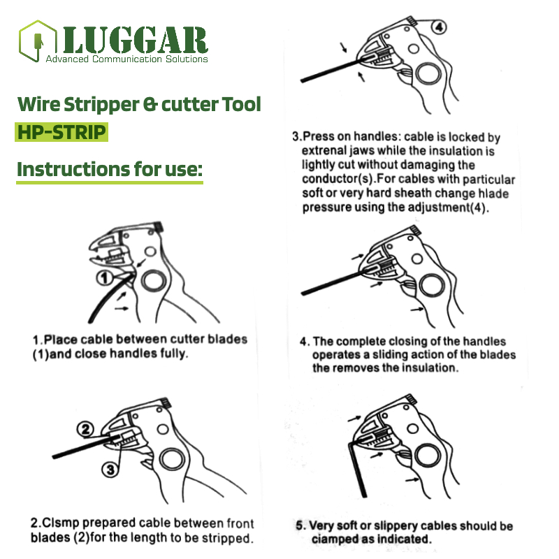 the strriping is completed, then remove the jacket cable that’s left.- For cutting wires – Place the cable at the blade opening and press the handle.
